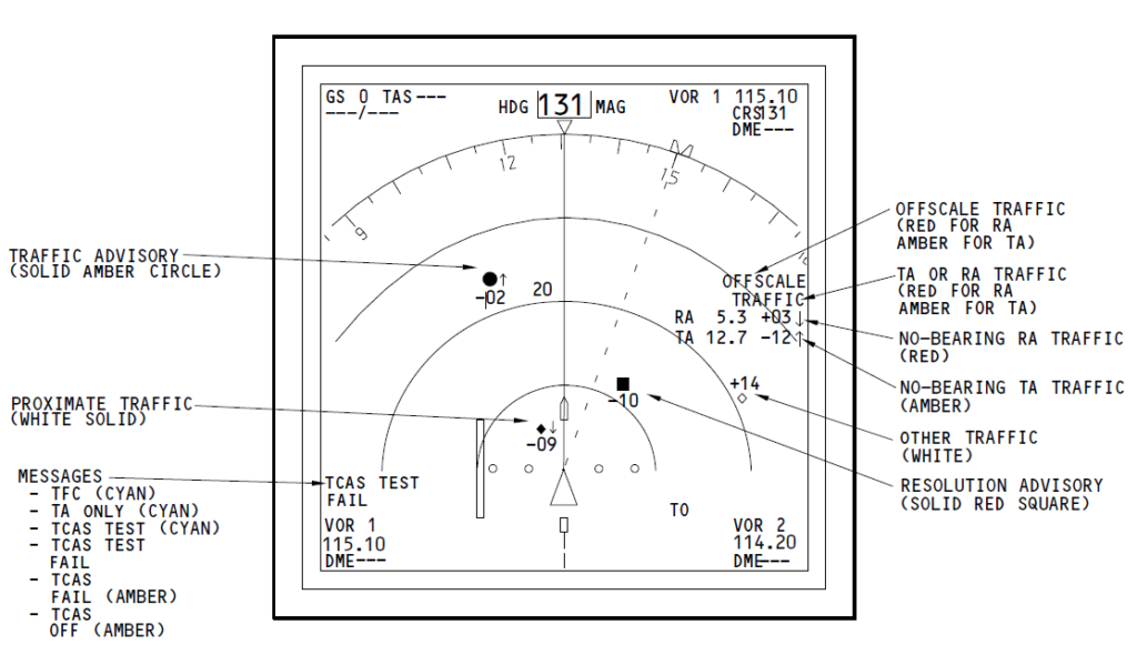 TCAS uses these response signals to calculate the range, relative bearing, and altitude of the responding airplane. TCAS then calculates how close the target will be to own airplane at the closest point of approach (CPA).