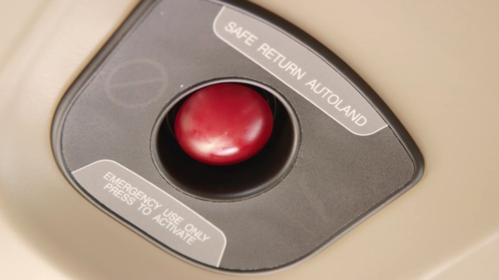 This technology, called a safe return, can be used if something happens to the pilot and is unable to land the plane. When one of the passengers hit the Safe Return Autoland button located on the ceiling of the aircraft so that passengers can easily reach it, the authorities are informed and the aircraft automatically starts the procedures for landing after determining the nearest runway.